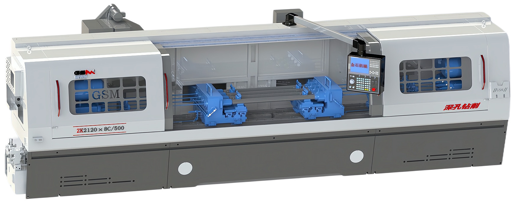 裝夾方式: 機床配置數控橫向移動工作臺;工件采用“V”型鐵支撐工件外圓,液壓旋轉壓板自動夾緊工件;一次裝夾,可以完成多個孔位的深孔加工;