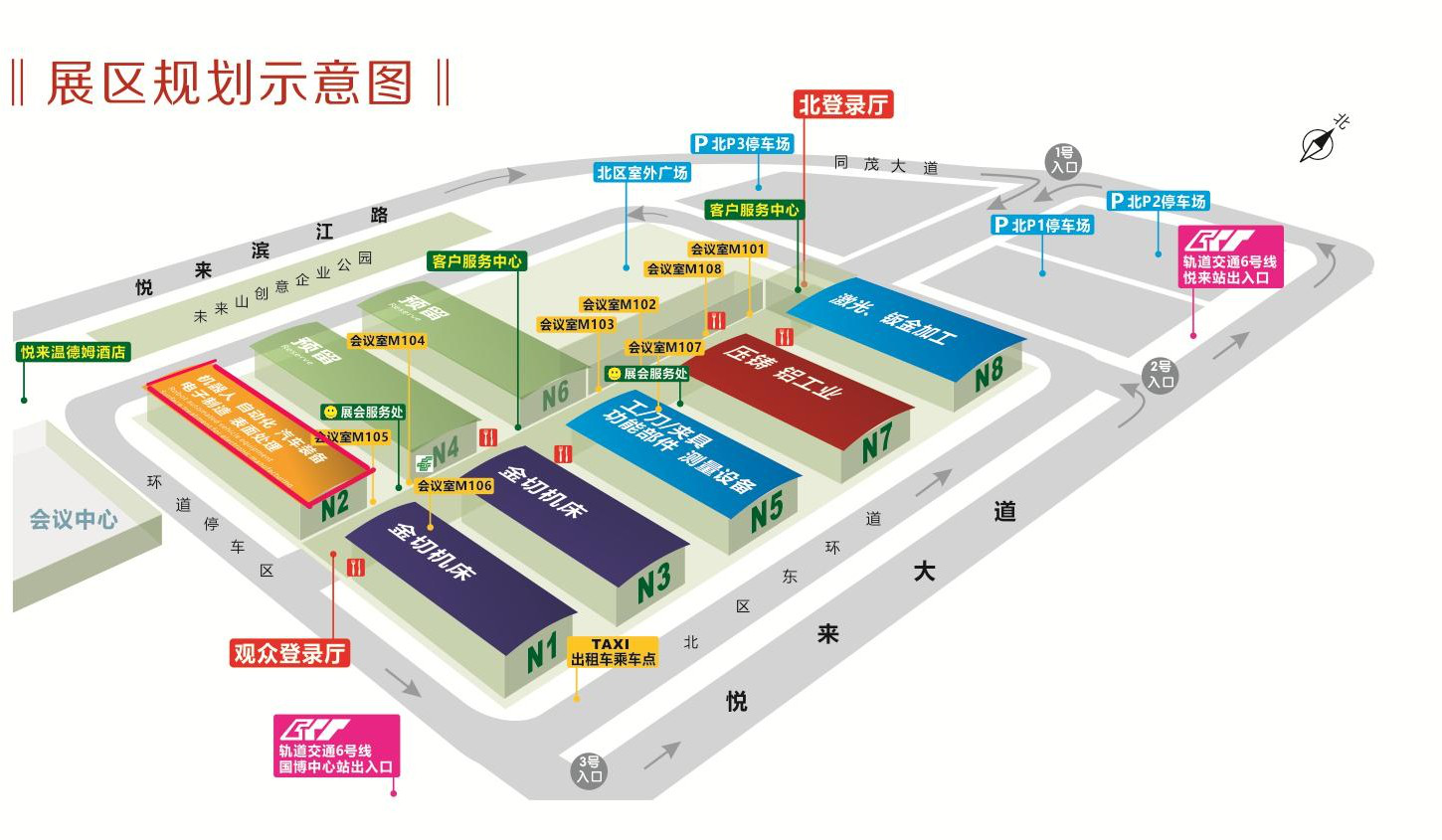 6號線:禮嘉(換)乘國博中心(支線),悅來站下(1號出口國際博覽中心北登錄廳)